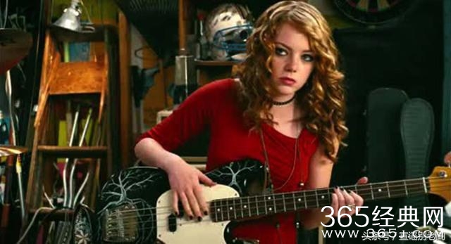 先说说石头姐——在2008年,石头姐演了两部电影。一部是跟音乐有关的喜剧片《摇滚之王》,她是这只拼凑而成的摇滚乐队中的贝斯手,也是其中唯一的女将,虽然她在其中并未开嗓唱歌,但摇滚范儿十足。
