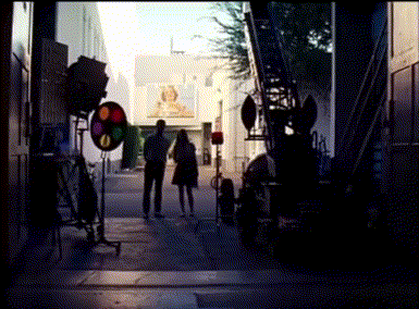石头姐带着高司令溜达到片场的镜头,在《雨中曲》也出现了类似的,只是原本的影棚换成了街头背景~