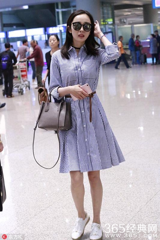 人人都说辣妈杨幂一点都看不出来已经是一个两岁孩子的妈妈,果不其然,大幂幂身穿Michael Kors衬衫裙,棕色细腰带勾勒腰线不仅塑造腰身好比例,也让一件普通的衬衣裙立马有了看头,搭配Michael Kors的小白鞋和包包,整体LOOK干净大方有气质。