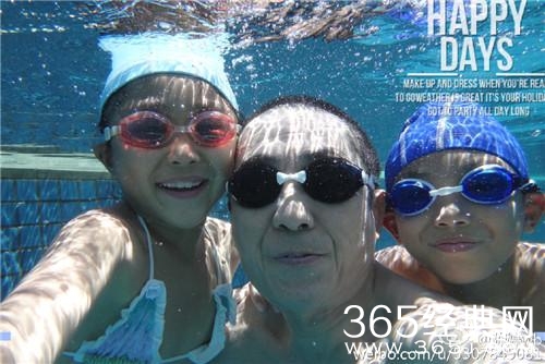 陪着儿女去游泳,真是老当益壮啊。