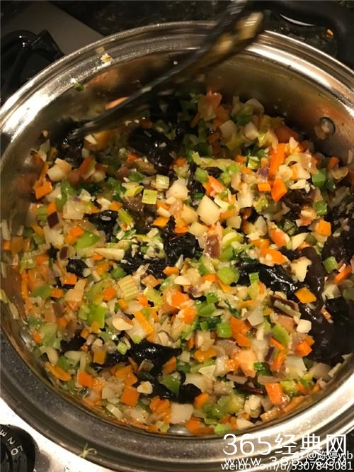 然后又是亲自剁料,五十年失去的刀工居然还是不错的,五颜六色看起来还是很有食欲的。