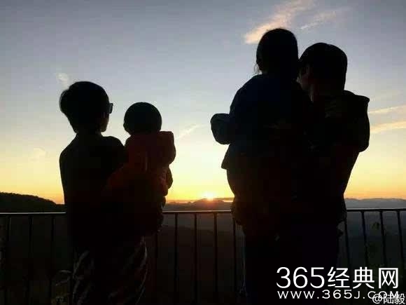 到现在两个人,变成了四个人,一人搂一个女儿看夕阳,简直太温馨。