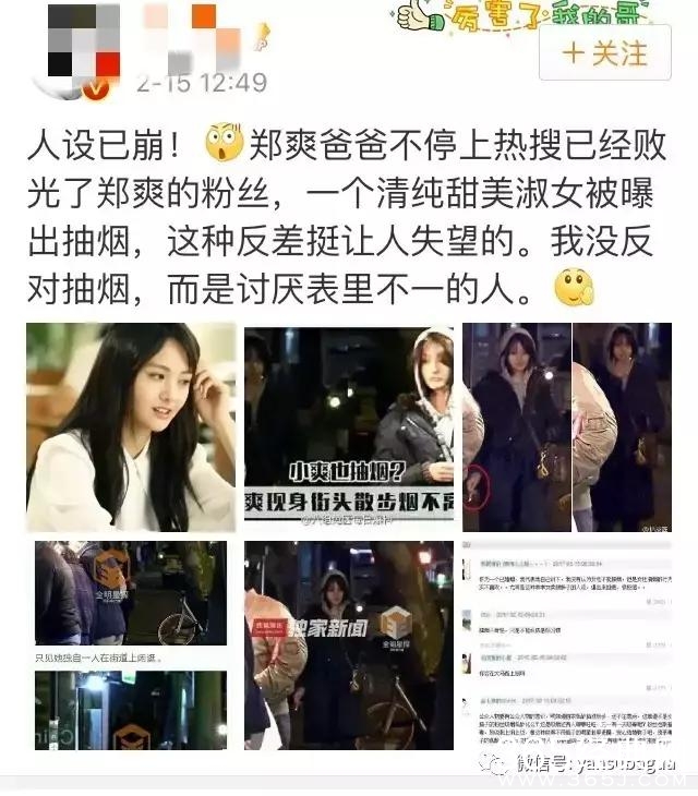 但更重要的是,从不喜欢郑爽的人,到部分郑爽粉丝,都默认了一个逻辑:抽烟毁形象,抽烟不清纯。