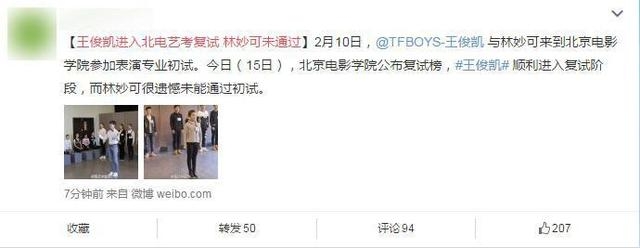 2月15日一早,就有媒体报道林妙可素颜参加中央戏剧学院表演系的复试,精神状态看上去还不错。