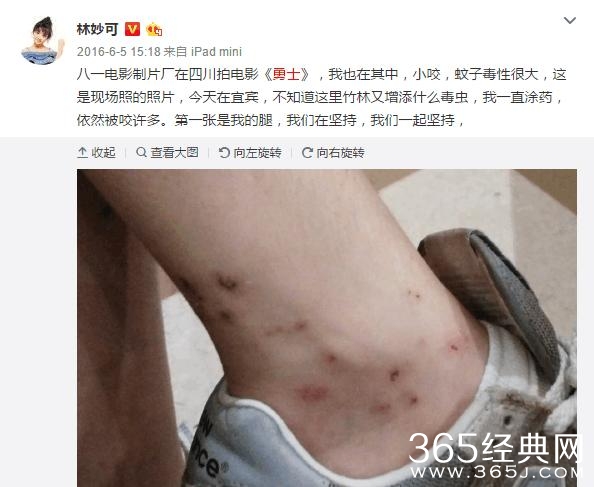 而林妙可在拍摄中,条件也比较辛苦,被毒虫和蚊子叮咬的伤口触目惊心。