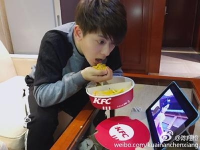 其实这对算是低调种的高调明星情侣,陈翔也会默默在微博晒幸福,这不前几天陈翔为KFC打广告顺便也带上自己的女友了。