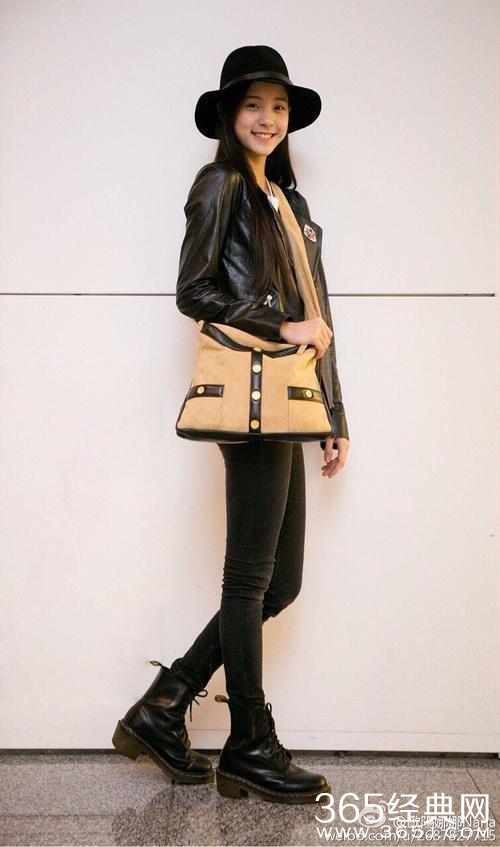 这又是一身黑的打扮,黑色宽帽皮衣长裤靴子看起来很有型,浅浅笑意露出了可爱的卧蚕,少女感就是这样营造出来的