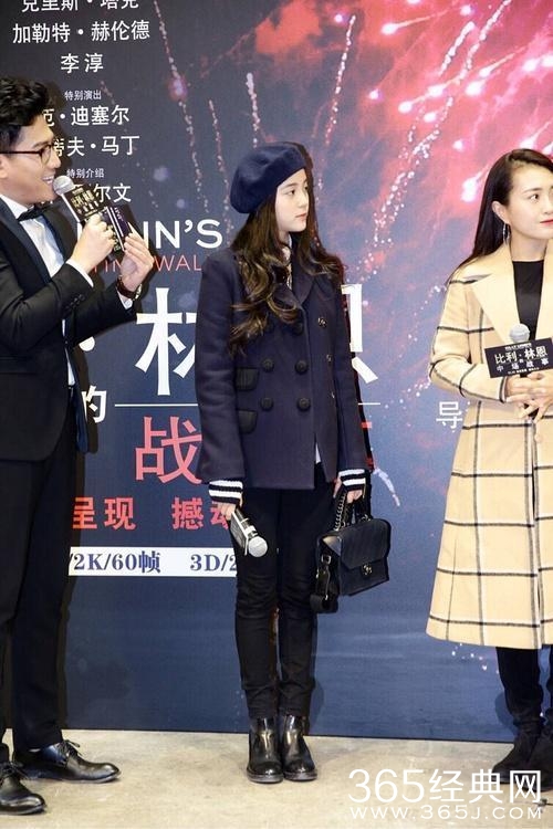 这身藏蓝色海军风毛呢外套非常有校园气息,搭配万能的黑裤和黑靴,一头长卷发带上一个贝雷帽,有一种很乖巧淑女的感觉