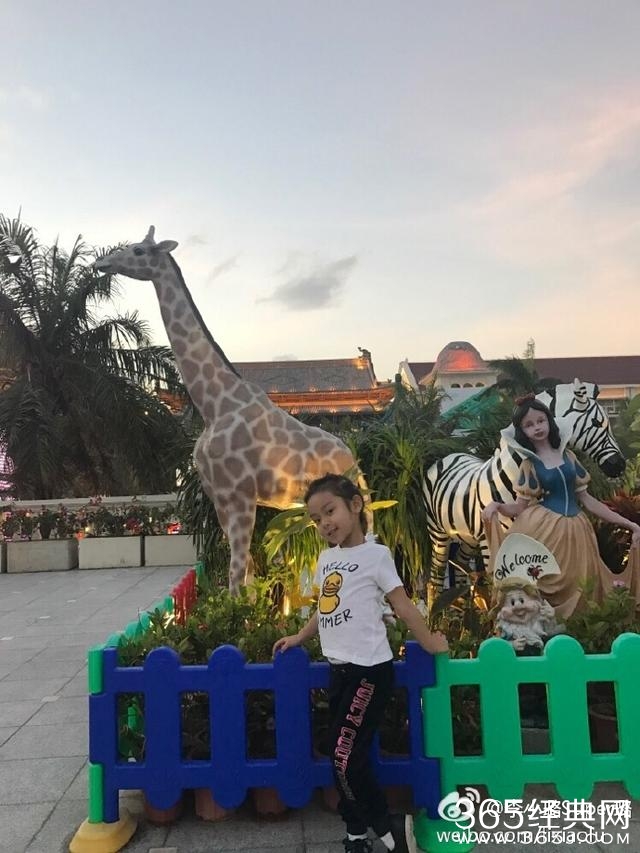 不过说到摆Pose,甜馨真的有一套呢~这不,上次和爸妈一起出游,小甜馨还特地把腿放在前面,双手抓着后面的栏杆,镜头感真的遗传了星爸星妈呀~