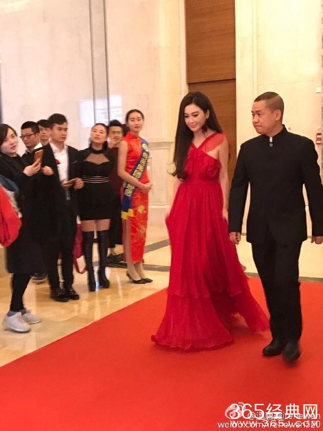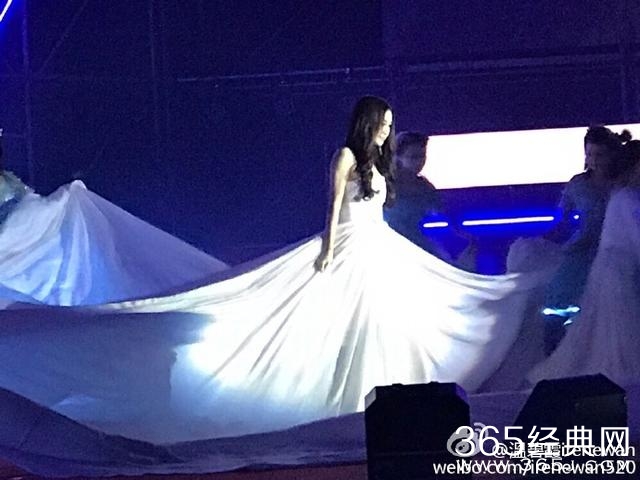 出席活动代言的温碧霞,袭白裙礼服,大大的裙摆,犹如天女下凡。
