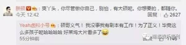 此账号还在评论下与某博主互动称“我没事我有剧本有工作!为了正义!毕竟这么多孩子呢哈哈哈哈好莱坞大片看多了”