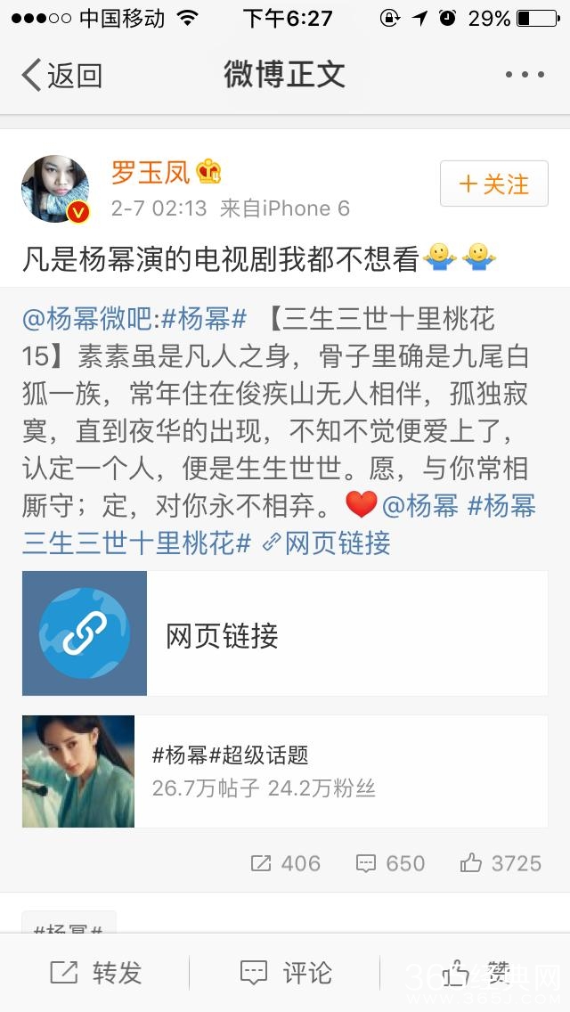 之前小编也看到了凤姐转发杨幂微吧的微博说:“凡是杨幂演的电视剧我都不想看。”这典型要花样作死啊,不过,换个角度来想:凤姐的言行不一,这也肯定了杨幂的《三生三世十里桃花》影响力大!远在美国的凤姐都知道!