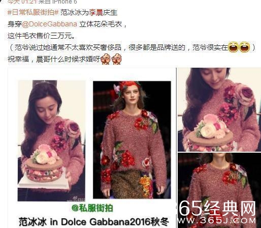 范冰冰给李晨过生日,穿的一件毛衣就价值3万元!