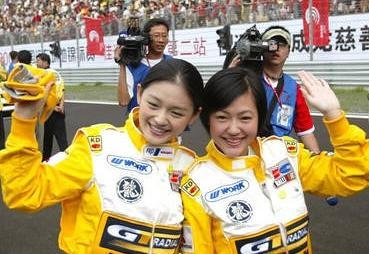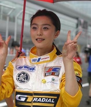 还有大美女范冰冰,只是这些美女都会开赛车吗??