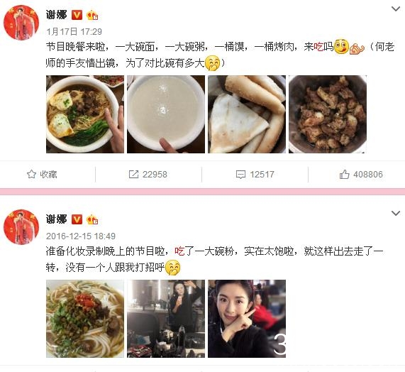 谢娜作为一个四川的辣妹子,不仅会做饭,在吃的时候也毫不含糊。不管是在节目中,还是私底下,谢娜都挺爱吃的。在她的微博中也经常能看到一些美食的照片。