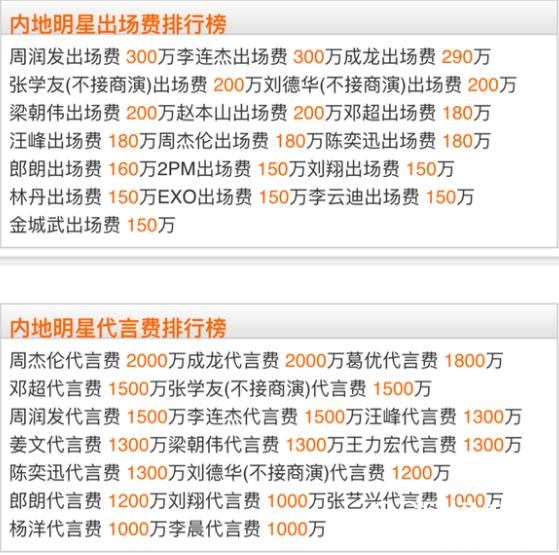 明星的收入一直是个很模糊的概念,红一点的明星动辄上百万的片酬