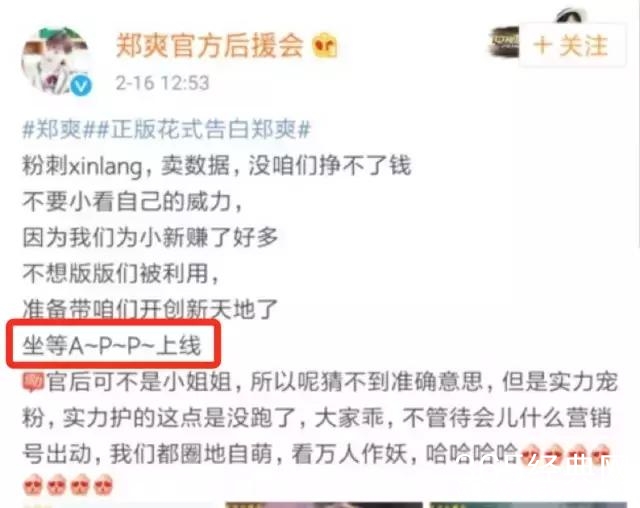 2月16日,深陷抽烟和小号漩涡中的郑爽,其官方后援会微博爆料,其个人APP即将上线,这款新的APP将带领粉丝回归郑爽的个人天地。粉丝们将不会被新浪微博利用,新浪也不要再想从郑爽的粉丝身上赚钱。