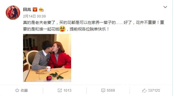 大家还记得前几天情人节田亮凌晨就是发微博秀恩爱还祝网友早日脱单的这件事吗~