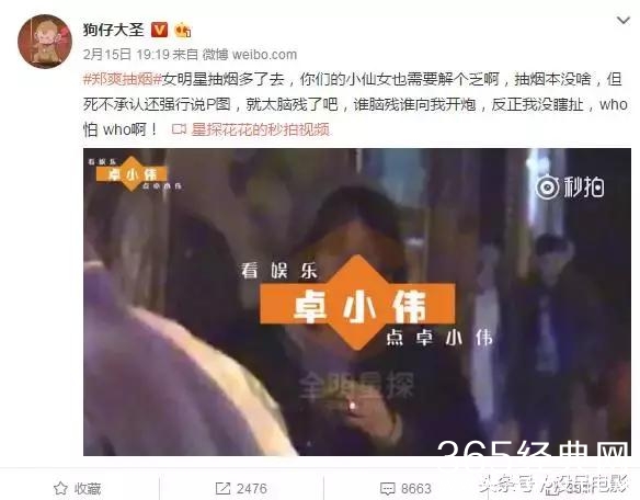 郑爽的很多粉丝纷纷出现,洗白郑爽说图片是p的,怎么会用中指和无名指夹住烟?