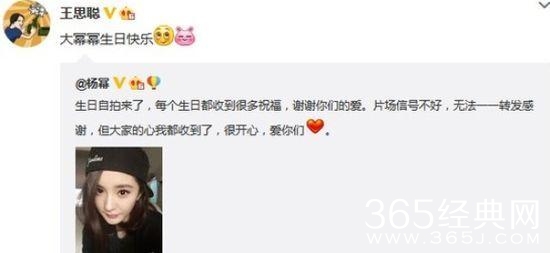 然后杨幂这种落落大方的态度明显给她涨了好感度,王思聪还祝过她生日快乐。