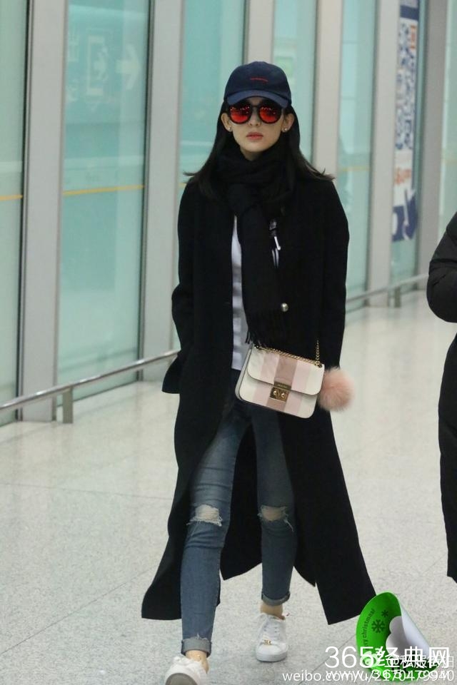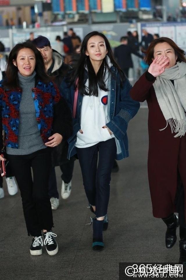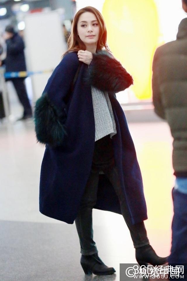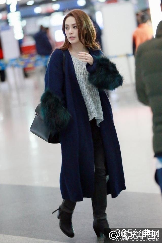 首先是颜值一向在线的阿娇,身穿灰色毛衣和深色牛仔裤,外搭蓝色长款大衣,全身衣服没有一件大牌,整体造型略显土气,看起来太过朴素啊!