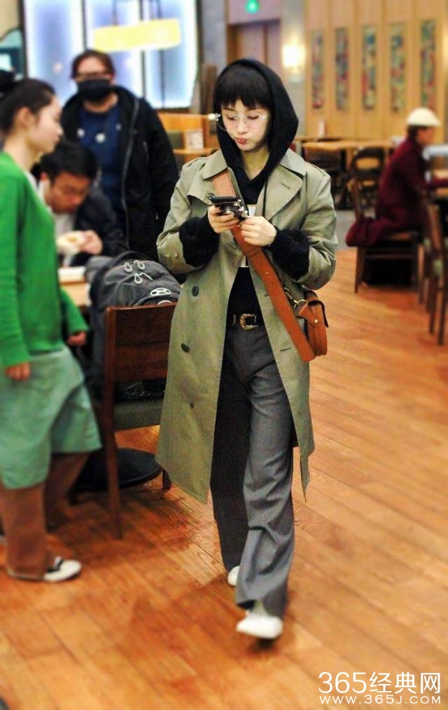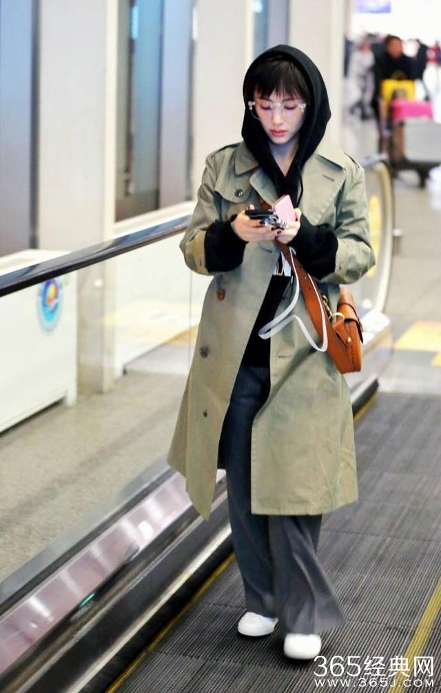 同样身材娇小的王子文身穿风衣和阔腿裤,还带着内搭的黑色卫衣帽子,看起来可就悲剧多了啊!