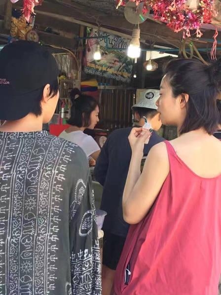 据网友爆料,俩人这次是一起相伴去泰国。一路上俩人亲密无间,而且时不时地吃着美食,俨然一副吃货相,感情好得不得了。