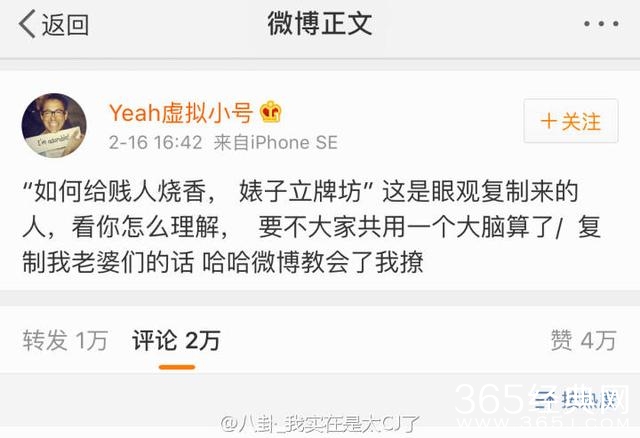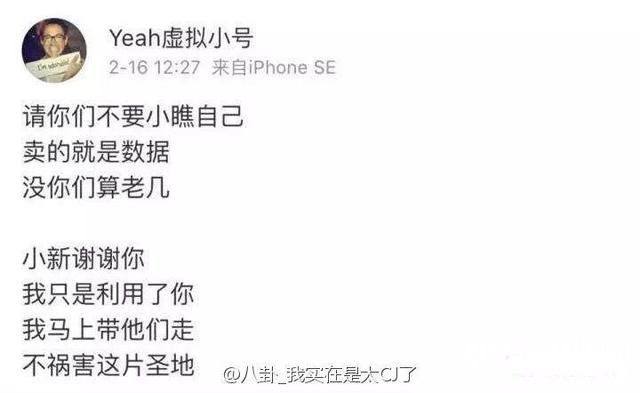 真的是······大开小编的眼界啊,各种脏话······真的是小太妹味十足~所以小编还是继续当路人好了。当然每个人都有言论自由,我们没有资格去评价别人,但是有一句话叫“能力有多大,责任就有多大”。小编私以为作为一个公众人物还是树立一个积极向上的形象好(如果您是粉丝请勿喷我,毕竟这只是鄙人的个人见解)
