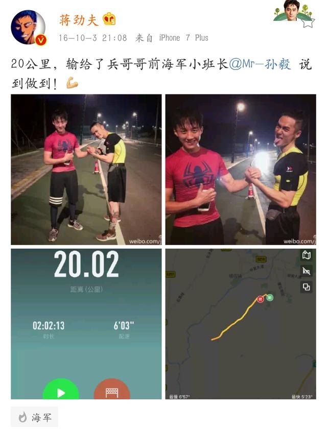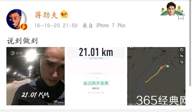 蒋劲夫的微博除了公关宣传,还经常发自己的健身状态,小编稍稍翻了翻,夫仔真的是跑步发烧友啊~男友力真的是爆棚啊~小编的少女心啊都快溢出屏幕了~