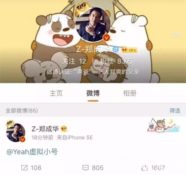还在跟路人争论不下的时候,郑爽父亲在微博上艾特了一个迷之账号:“Yeah虚拟小号”,随后秒删。