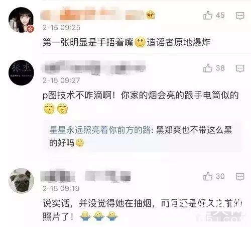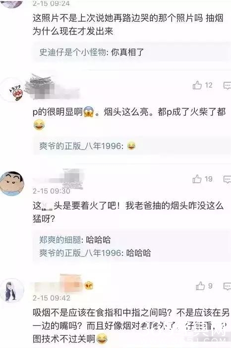 该图一曝光就引来郑爽粉丝洗地:照片有造假嫌疑,烟头太亮,且夹在中指和无名指之间,疑似P图。