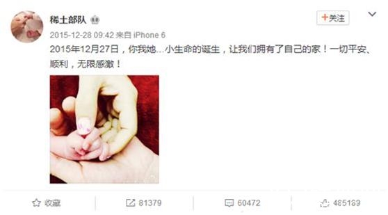 虽然章子怡和汪峰这段恋情一开始的时候并不让人看到,但是他们还是修成了正果。在2015年12月27日,汪峰和章子怡的爱情结晶出生了,并取名为醒醒,这也让章子怡从此升级为了宝妈了。