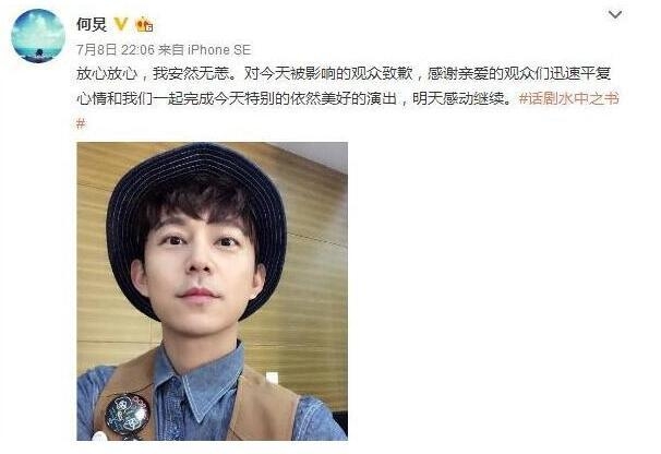 去年,何炅录制节目时被女粉丝打了一顿,何炅莫名其妙被打懵了,情绪稍作调整后,才把节目录制完。事后,他在微博上发文报平安,称:放心放心,我安然无恙,还向被影响的观众致歉。