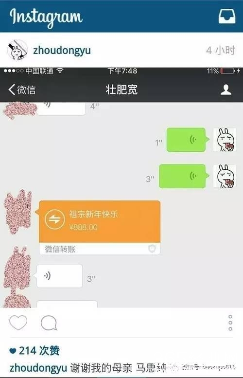 聊天记录里,马思纯给周冬雨发了888块的新年红包,附言是“祖宗新年快乐”,周冬雨回复:“谢谢我的母亲”,她给马思纯取的备注名,还是“壮肥宽”——这都没有撕逼,妥妥的真爱啊!