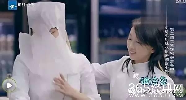 一起煎肉的时候,因为怕被油溅到,厨房专门准备了遮挡纸巾,周冬雨还拿起纸巾抠了两洞套在马思纯头上逗她玩——马思纯似乎也很习惯这种相处方式了啊