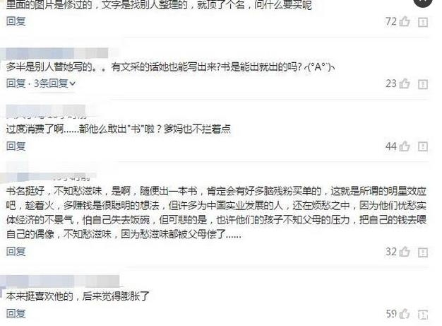 这事情一搞,粉丝宝宝都炸了。肯定是赶紧买偶像的书去啊。然而,网上也有些买过书的网友表示不满了,还有网友表示“白给我都不要”。抗议整本就是一百张关晓彤自己的照片,加点日常心情啥的。