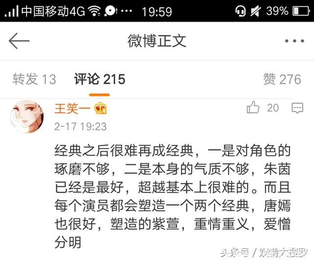 不过网友倒是很聪明,没有一味地追捧朱茵而去批判唐嫣。
