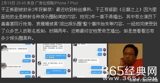 这位大v说的大概意思就是在粉丝爆料中得知于正为了自己拍的一部剧而与整个娱乐圈都撕逼了。