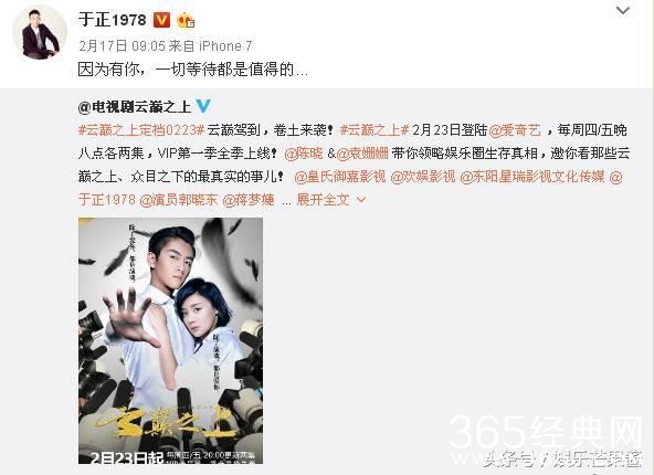 在满屏辣眼睛不重要的自拍之中,果果发现这其中穿插着几条关于《云巅之上》的微博。