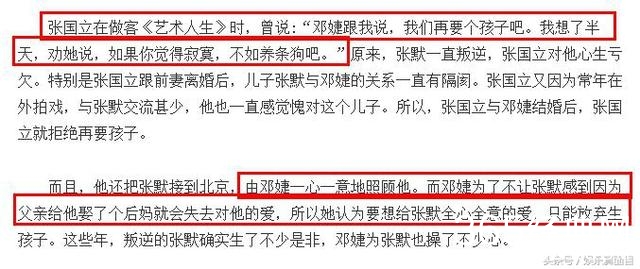 更是有传闻称,之所以邓婕没有生孩子,是因为张国立觉得愧对儿子,担心再要一个孩子会对儿子造成冲击。虽然邓婕曾经想过,但张国立拒绝了,说如果感到寂寞,不如养条狗吧。而邓婕为了做好后妈,也放弃了这个念头。