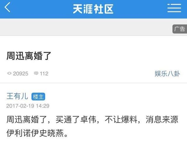 今天,在天涯忽然出了这么一条新闻,说周迅离婚了。还说是卓伟知道,但是不让爆料。
