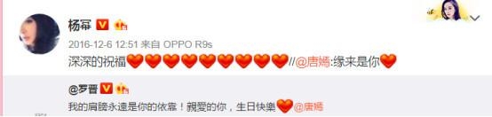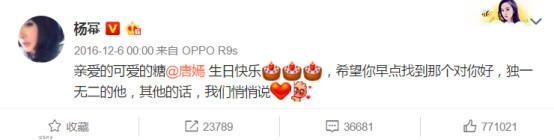同样的,杨幂为唐嫣发送生日祝福,也没有得到唐嫣的转发回应。