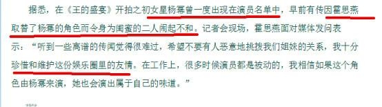 随着《王的盛宴》戚夫人一角从杨幂换成霍思燕后,姐妹团中再也见不到杨幂的身影。