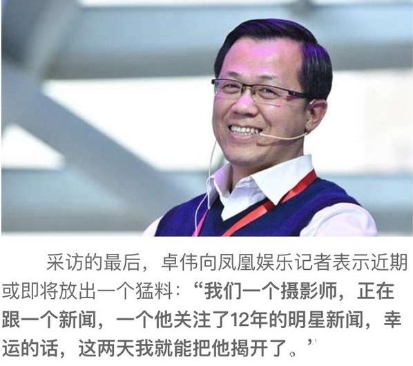 根据卓伟昨天的爆料,说最近会爆料一个跟了12年的大新闻,这就厉害了,因为12年的时间说明了很多的事情,最少这个明星火了12年!详情可以看小星之前的一篇文章:卓伟即将放大招爆一个12年的料,这次娱乐圈恐怕又要炸了!