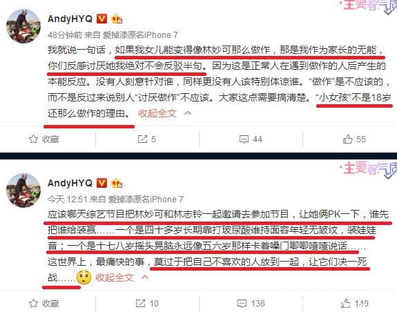 甚至称“如果我女儿能变得像林妙可那么做作,那是我作为家长的无能,你们反感讨厌她我绝对不会反驳半句。”