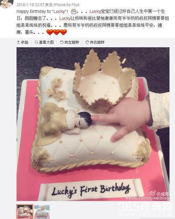 100天的时候。小宝贝名叫lucky,宝贝百日的时候戚薇晒微博了,看的出来满脸的幸福