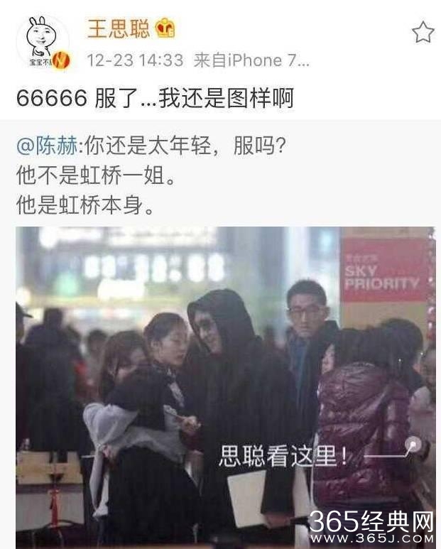 原来在王思聪的眼里,“虹桥一姐就是一个神经病,成天就在机场蹲着,大的小的明星都要凑上去合影”还炫富说过自己走的是私人通道没有和一姐合影过。