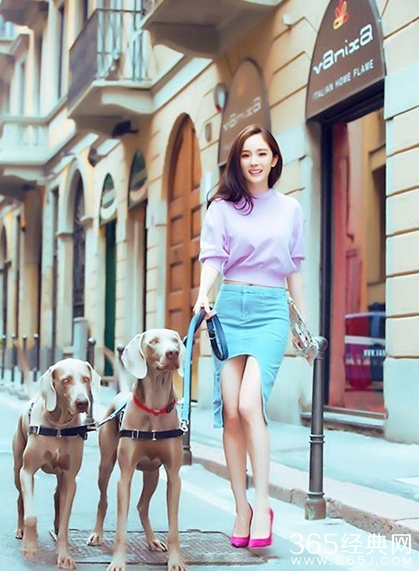 上身休闲随意,但也有着小清新的甜美范,裙子的倒U形前短后长的剪裁衬出了杨幂的时尚气质,玫红色的鞋子浓烈而出挑,成熟感十足。