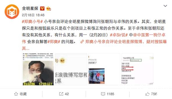 本来郑爽抽烟没准备放在人家卓叔的头条list里,只是爽妹的热搜体质连抽烟引发了一场史无前例的口水战。随着爽妹本人的加入,战争进入白热化。