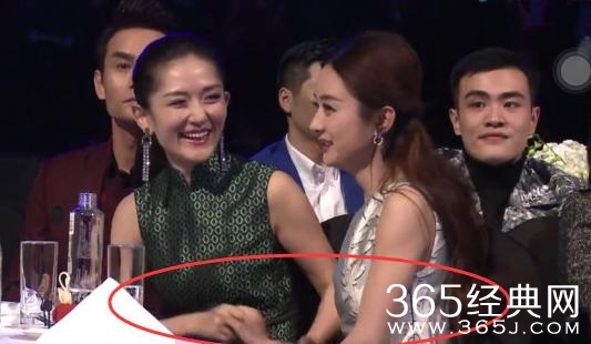 谢娜非常关心和关怀颖宝的。在mc颁奖台下,颖宝紧张的说不出话,谢娜主动的去握住她的手并开始逗她开心。(小编心里面感觉谢娜还是挺好的)